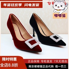 春秋羊皮金属扣尖头浅口细高跟单鞋女KA43520-11